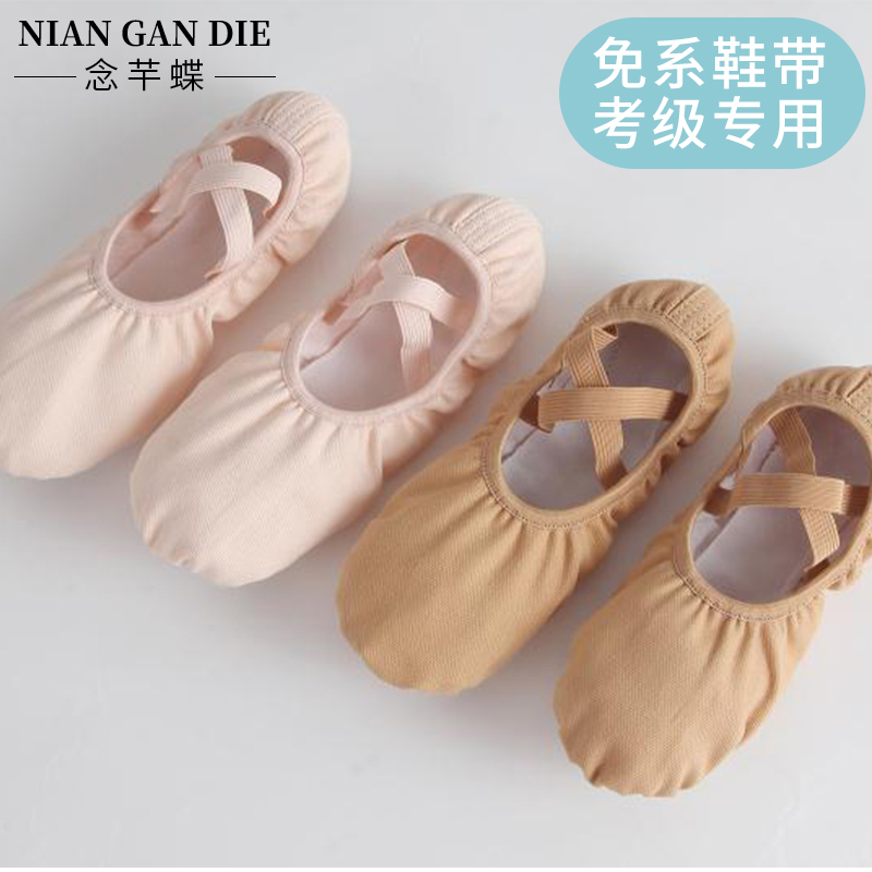儿童免系带跳舞芭蕾舞鞋 舞蹈鞋 帆布形体鞋 成人猫爪鞋 女软底练功鞋