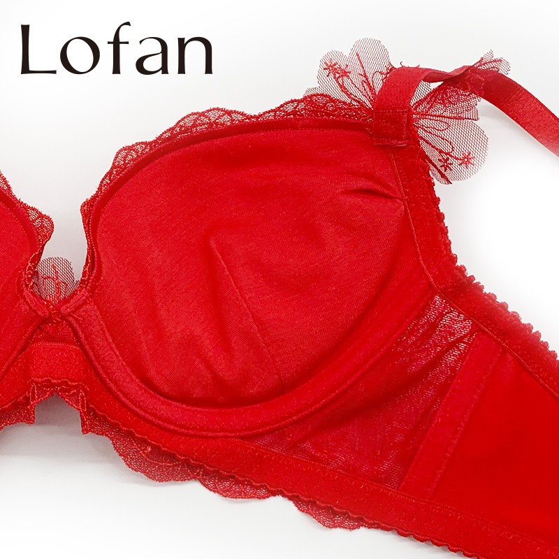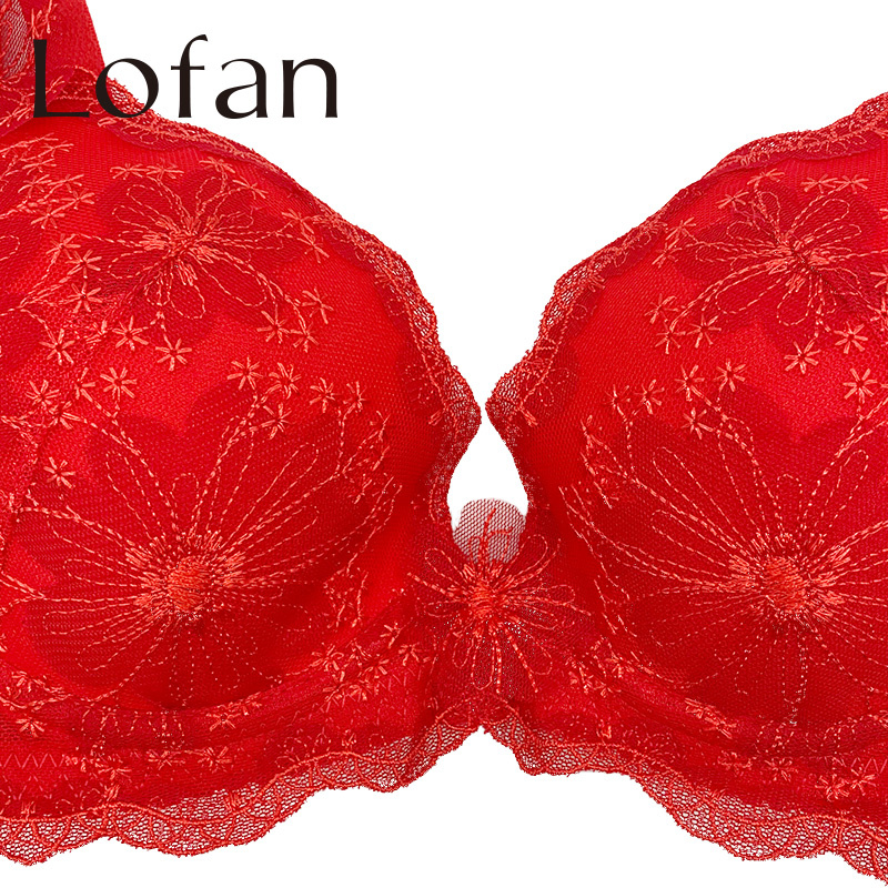 Lofan小胸聚拢调整型收副乳有钢圈精油按摩刺绣蕾丝文胸内衣2362