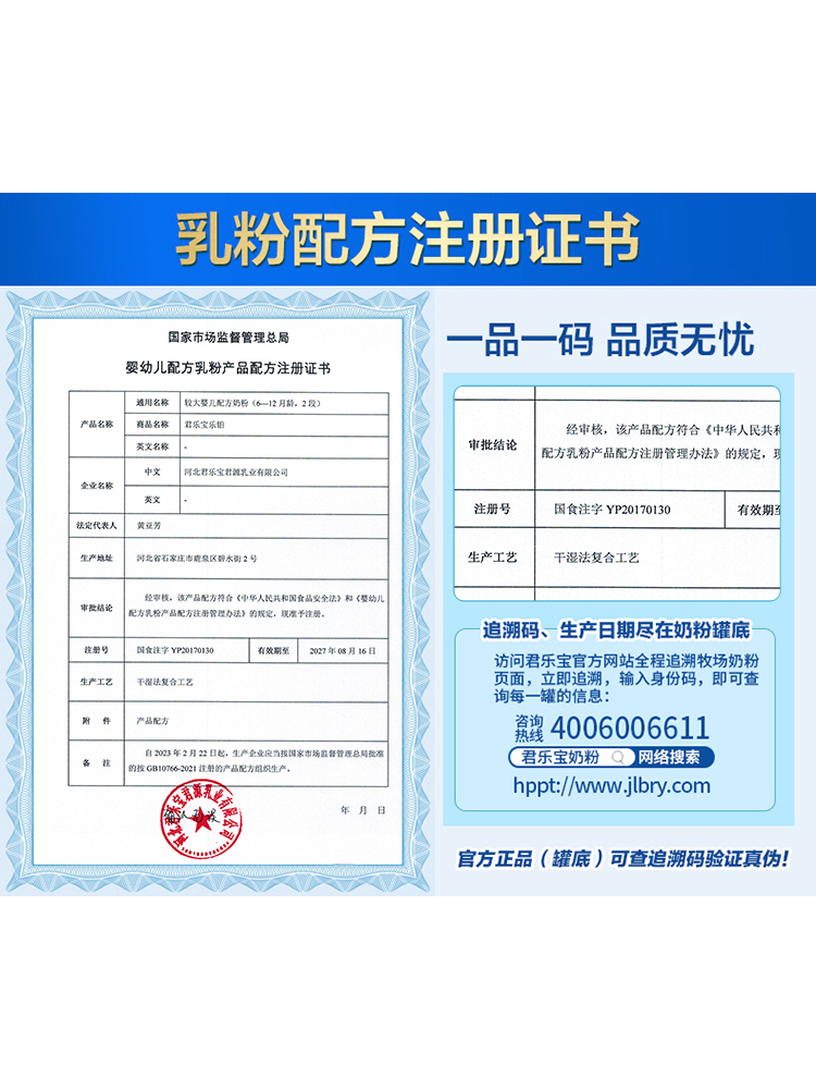 整箱更优惠 君乐宝奶粉2段乐铂婴幼儿牛奶粉二段400g盒旗舰店