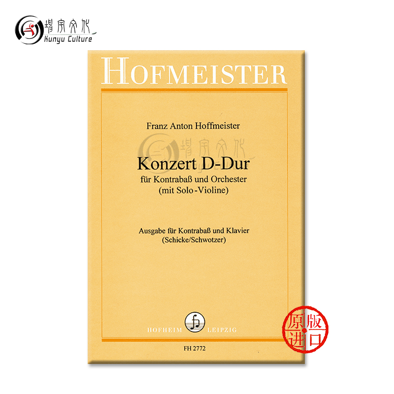 乐谱 低音提琴和钢琴 原版 Orchestra 2772 霍夫迈斯特D大调低音提琴协奏曲 Bass Concerto 霍夫曼斯特 for Major Double
