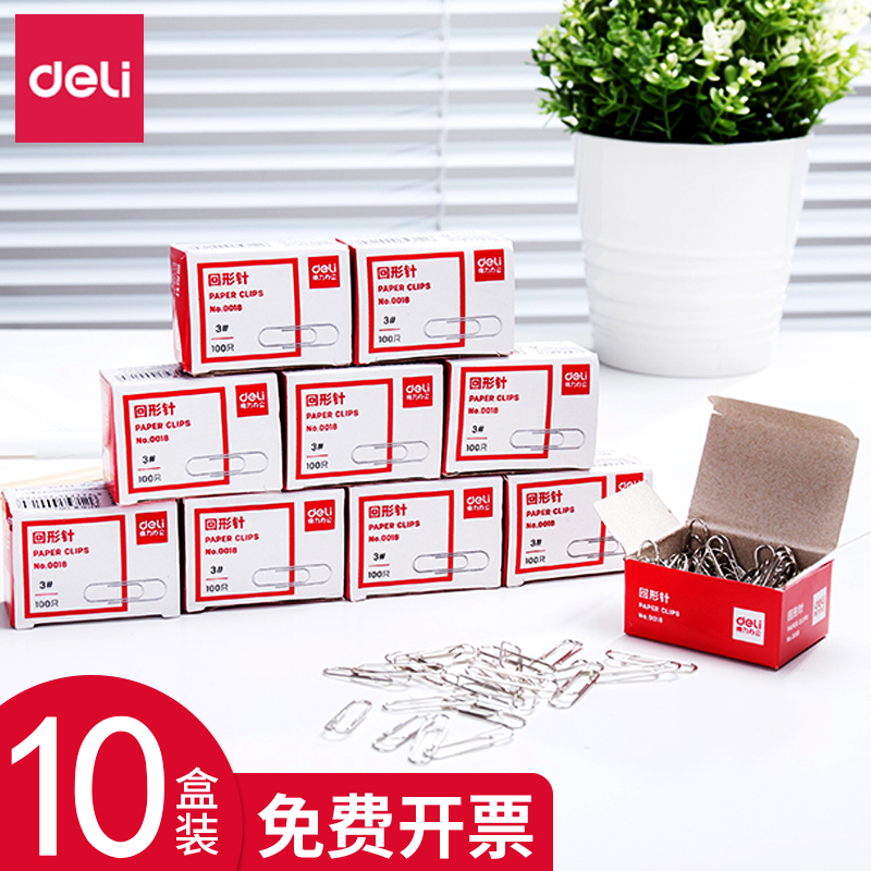 订文具镀镍加厚学生手工工字钉大头针三针一钉批发 得力回形针曲别针办公用品回型针别针固定衣服装 10盒装