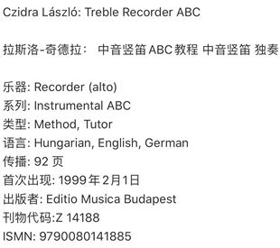 Treble Z14188 布达佩斯原版 alto ABC Recorder Laszlo Czidra 进口乐谱书 中音竖笛ABC教材 拉斯洛