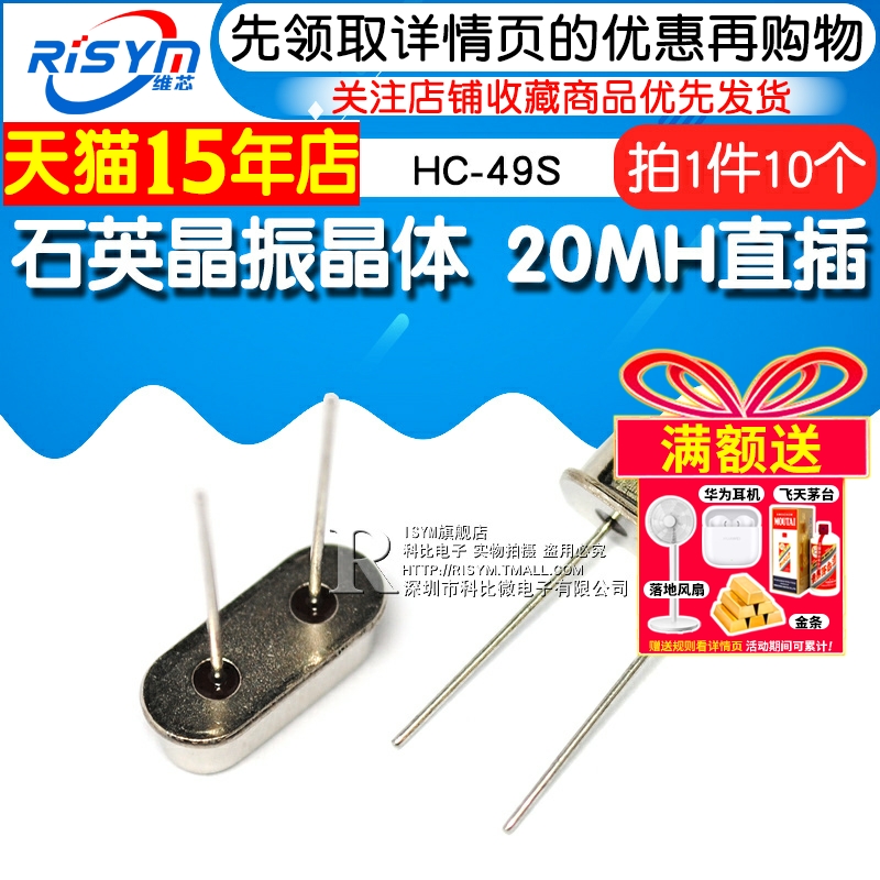 20M钟振石英晶振晶体 Risym 49S无源晶振 10个 20MHz直插两脚