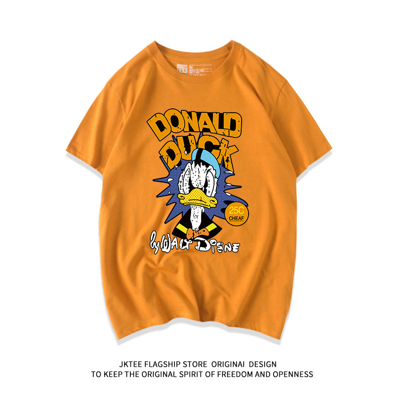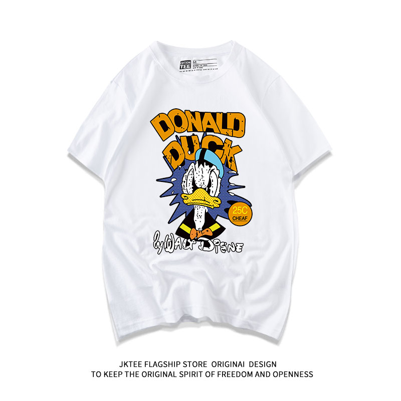 体恤ins潮 胖mm情侣半袖 卡通图案印花纯棉黑色t恤女短袖 宽松bf大码
