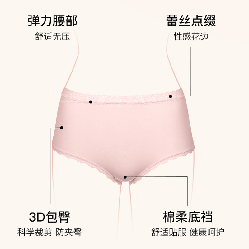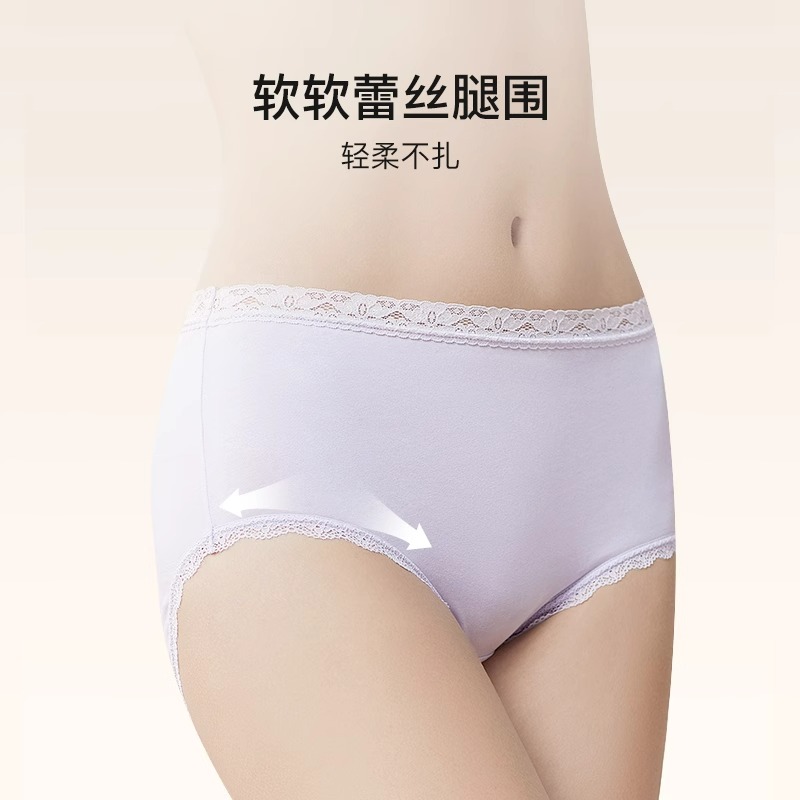内裤 有棵树女士内裤 纯棉加长裆10A抗菌透气高腰花纱平角2025新款