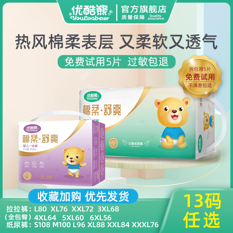 拉拉XL码 优酷熊婴儿纸尿裤 L超薄透气干爽XXL宝宝尿不湿男女XXXL裤