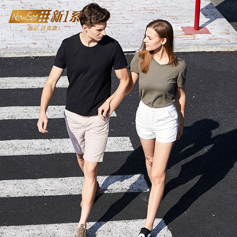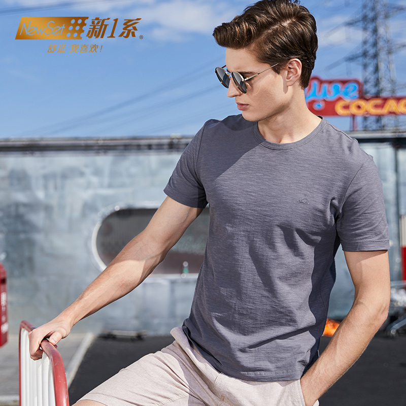 新1系100%纯棉男短袖 中青年全棉白色圆领黑色V领透气运动T恤汗衫
