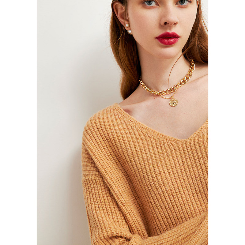 套头百搭保暖针织衫 羊毛衫 v领长袖 女秋冬新款 毛衣洋气上衣 打底衫