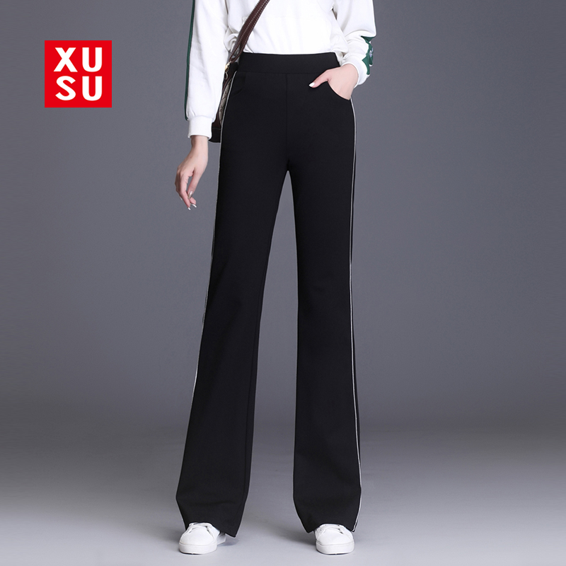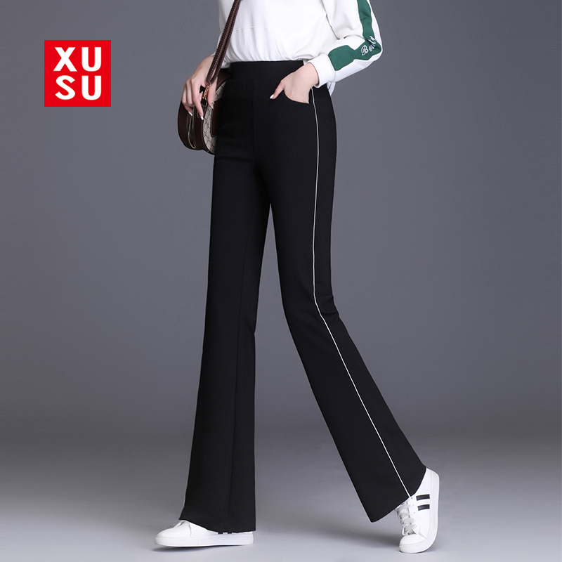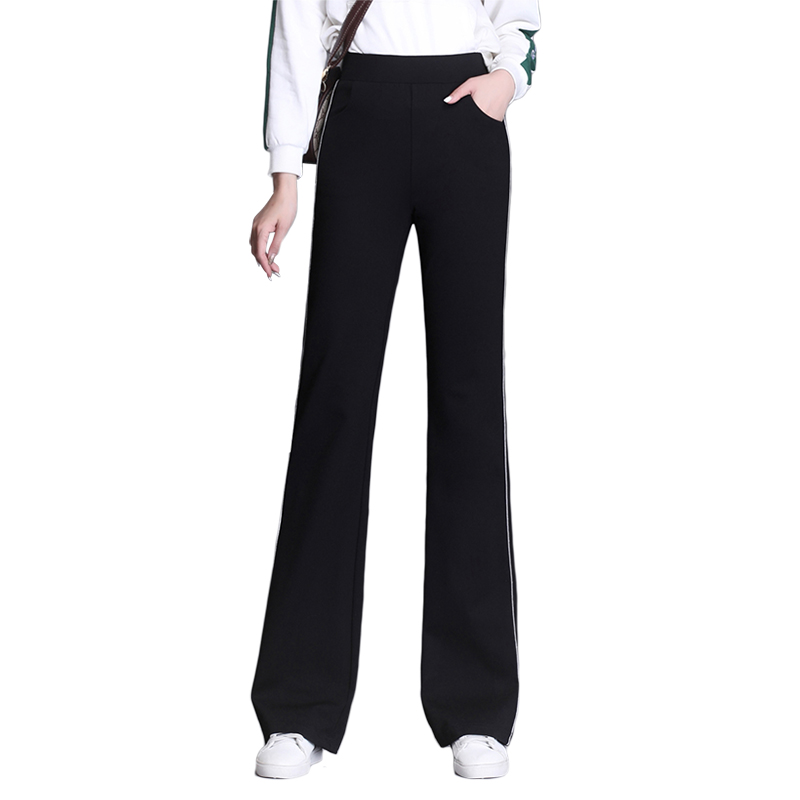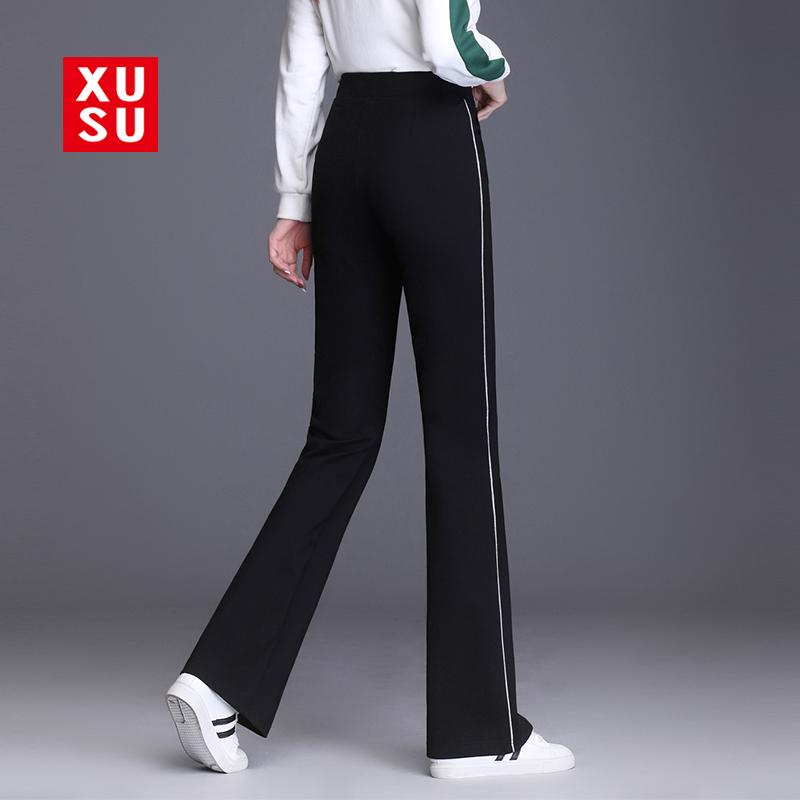 女秋季 显瘦春秋休闲裤 长裤 弹力运动喇叭裤 高腰2025新款 银边微喇裤