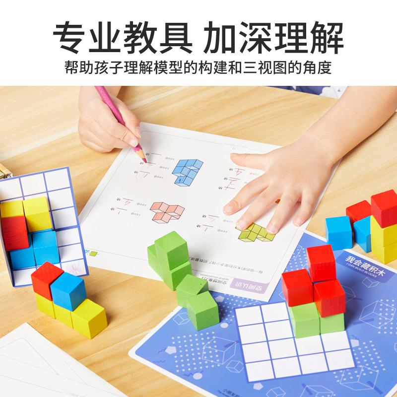 正方体方块积木数学教具几何木质益智拼装 儿童玩具立方体磁性搭建