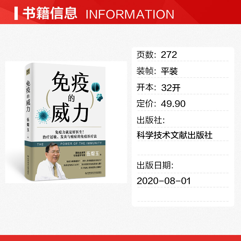 威力 免疫医疗法医学知识理论普及书 国际免疫学权威伍焜玉院士 治疗过敏发炎与癌症 维持免疫系统人体运作机制 免疫科普 免疫