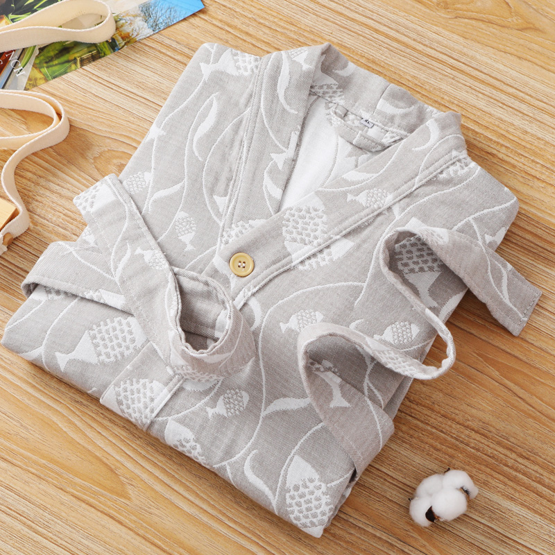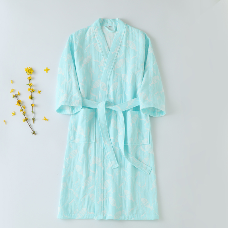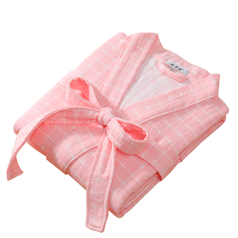 秋若薇纯棉浴袍春夏三层纱布加密柔软吸水男女洗澡浴衣中长棉睡袍