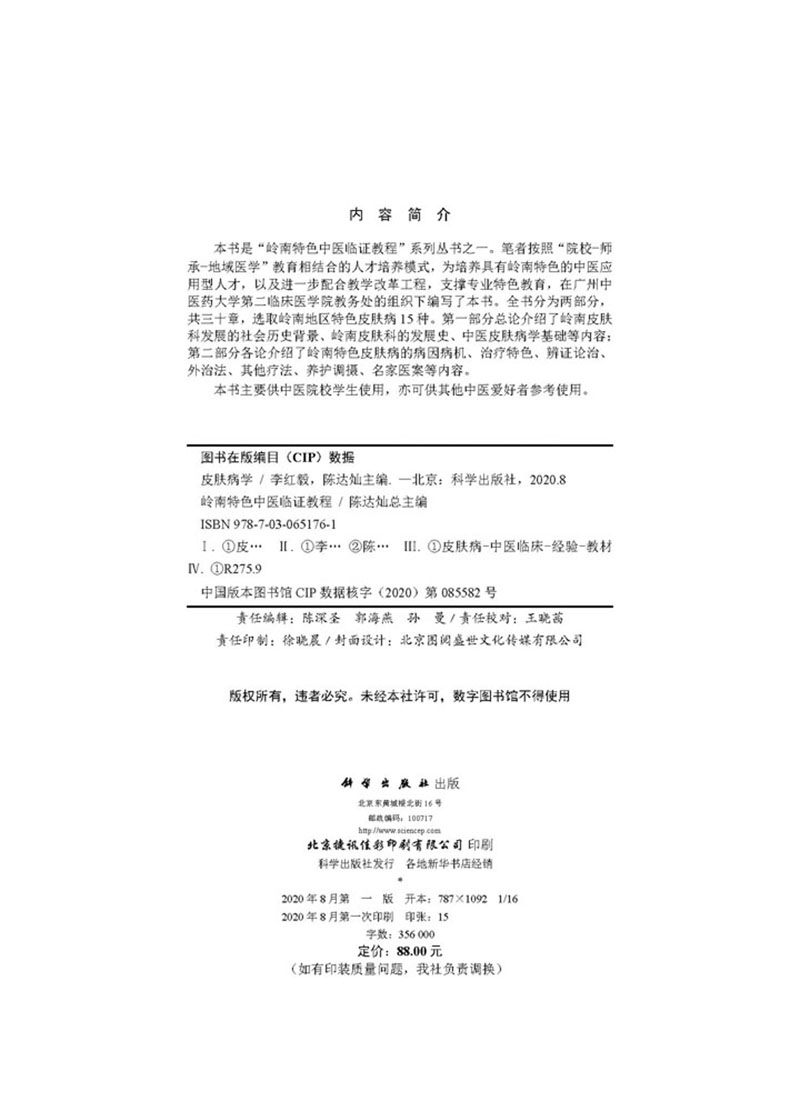 科学出版 现货皮肤病学 陈达灿主编 李红毅 社9787030651761 岭南特色中医临证教程