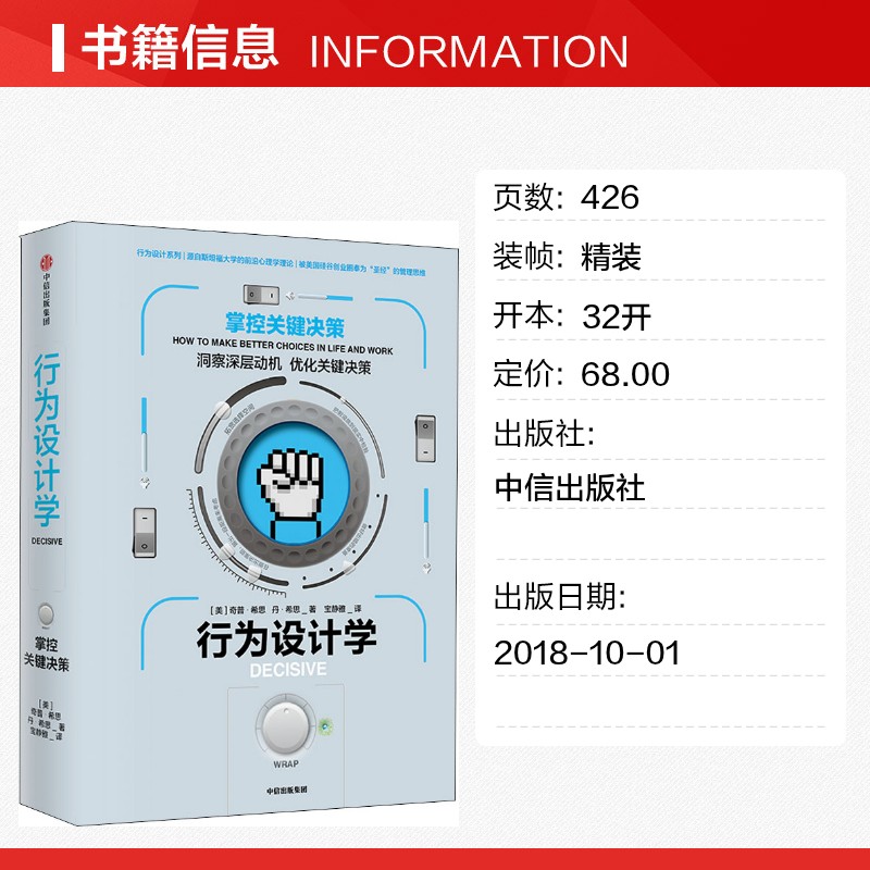 解决选择恐惧症 企业管理正版 书籍 行为设计学 选择恐惧症 揭秘决策背后动机思维漏洞 帮你搞定 行为心理学畅销书 掌控关键决策