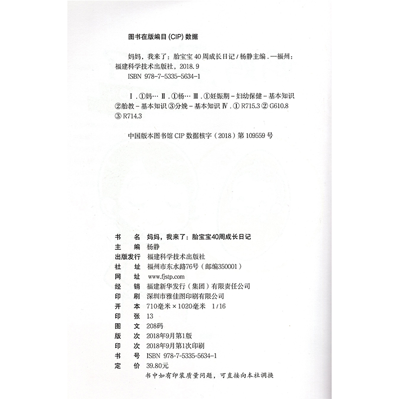 杨静 社 我来了 筹帷幄 度过您孕育生命 孕 妈妈 胎宝宝40周成长日记 福建科学技术出版 正版 幸福旅程 现货