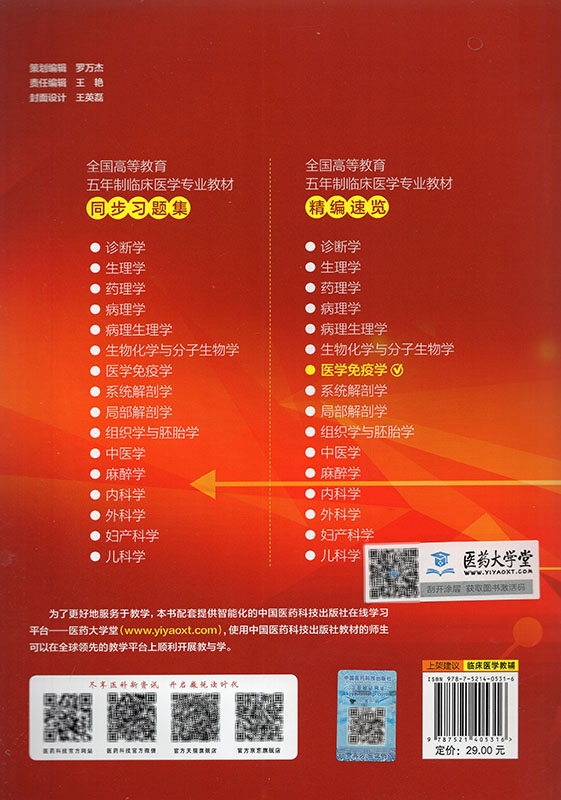 中国医药科技出版 正版 全国高等教育五年制临床医学专业教材精编速览 医学免疫学 社 现货