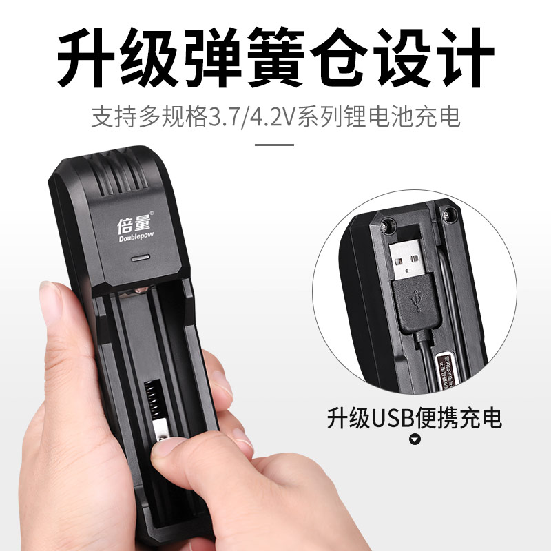 倍量 18650锂电池充电器小风扇电池充电器强光手电筒单槽智能快充