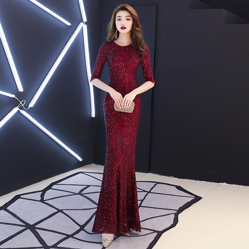 红色晚礼服女秋2025新款 高贵宴会气质主持人高级感鱼尾敬酒服新娘
