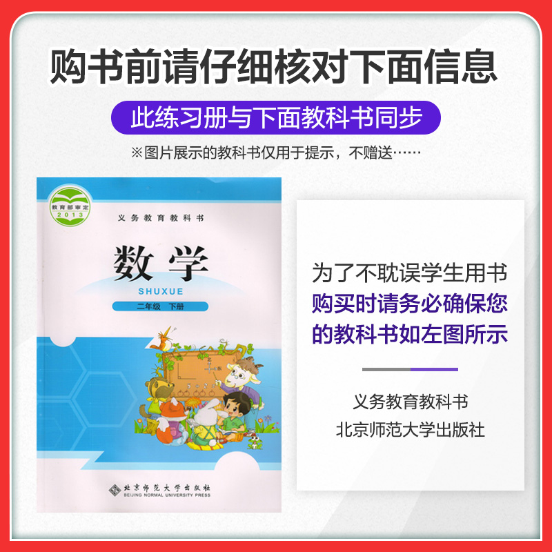 脱式 社课本使用海淀新版 配北京师范大学出版 速算应用题卡 数学口算心算速算巧算竖式 BS北师大版 二年级下册 口算题卡 乐双图书