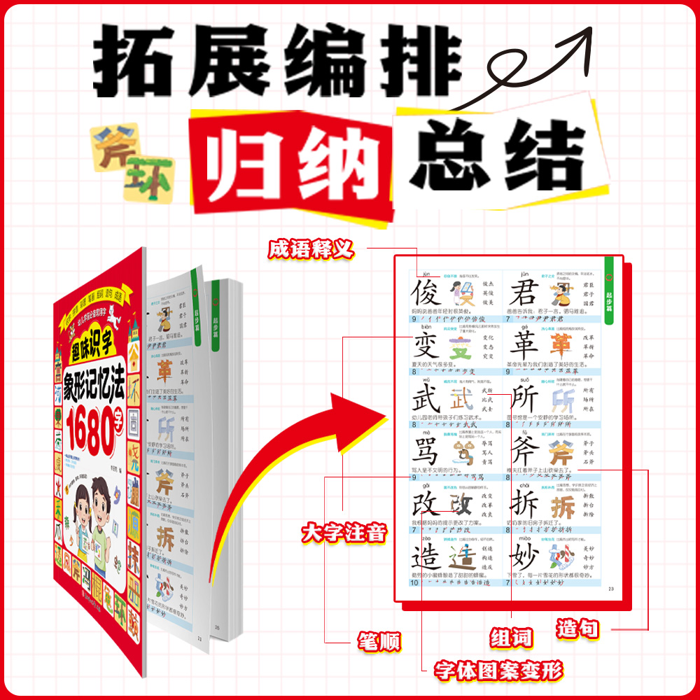 书籍大字注音版 象形记忆法1680字正版 笔顺笔画识字组词造句幼儿园识字认字启蒙教育少儿科普百科读物 趣味识字