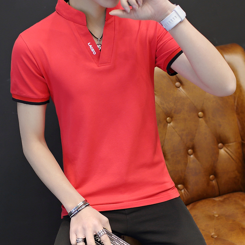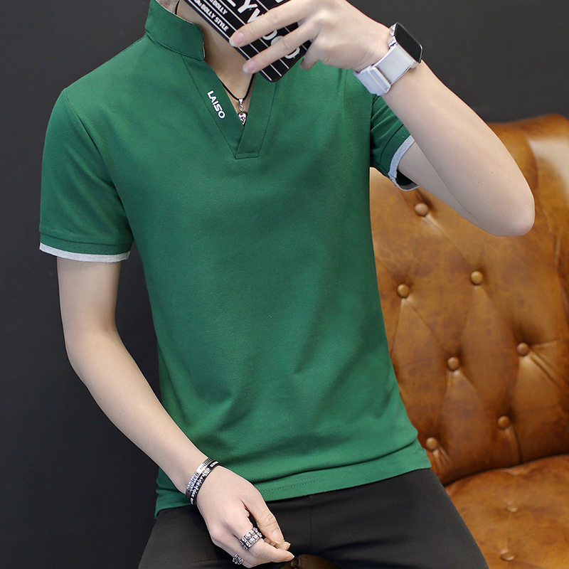 t恤潮流大码 短袖 立领polo衫 v领半袖 男衣服 2025夏季 体恤打底衫 男士