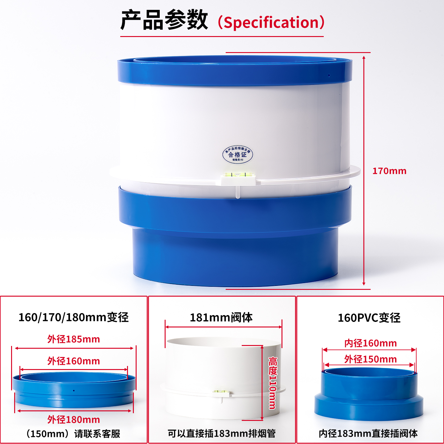 油烟机止逆阀厨房专用160PVC管道烟道止回阀逆止阀通用烟机止烟阀