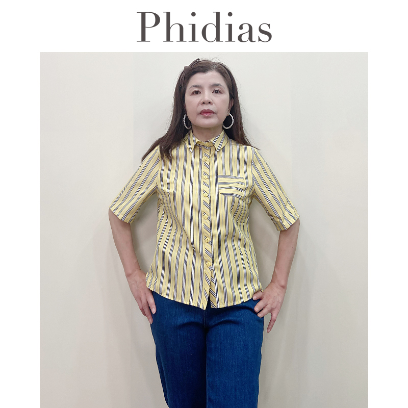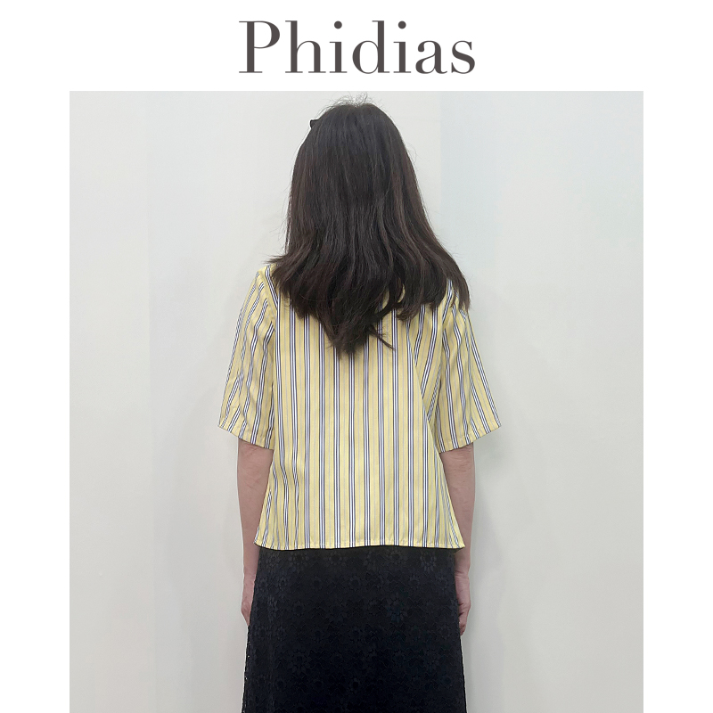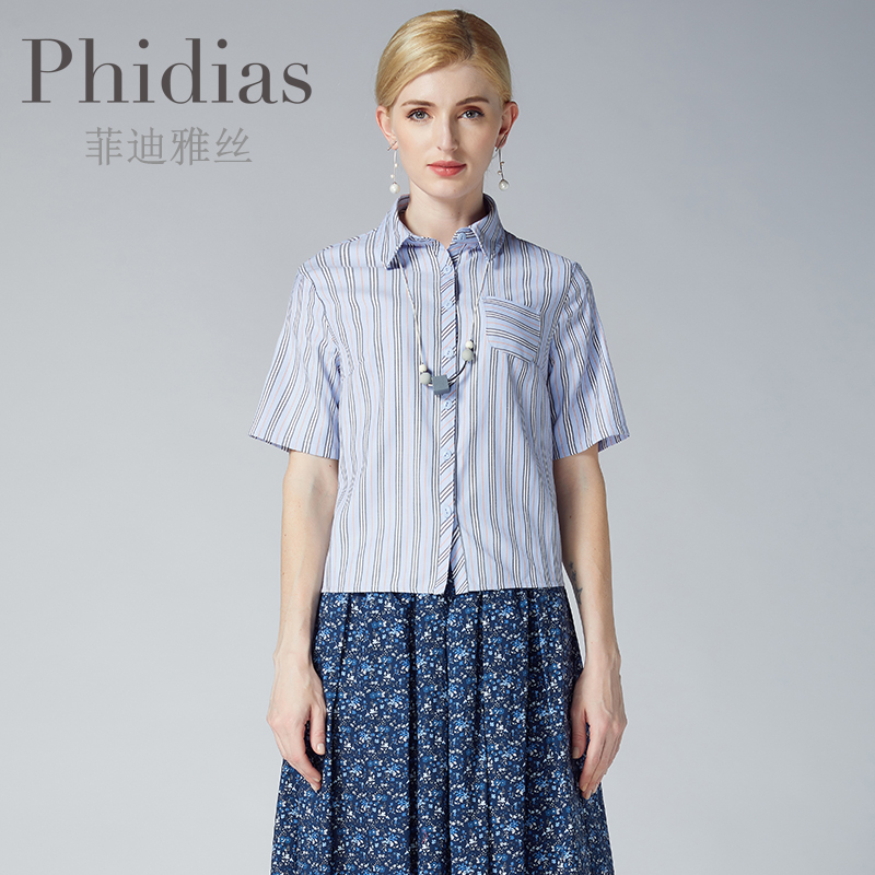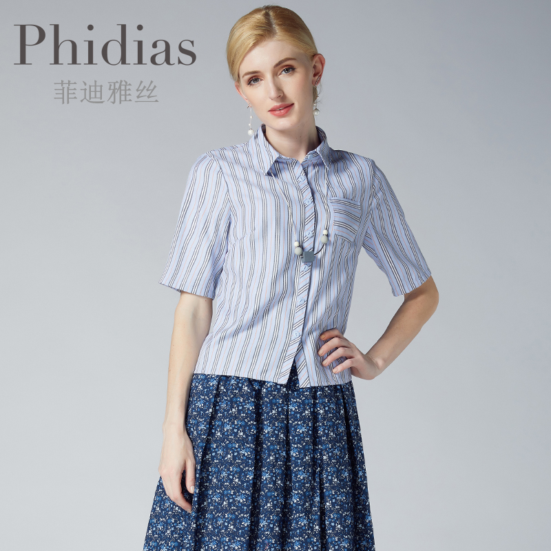 时尚 Phidias短袖 女夏商场同款 新款 通勤Ol气质条纹衬衣 衬衫