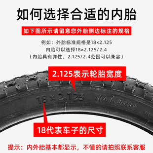 2.125 1.95 2.4单车配件 18寸轮胎1.75 儿童自行车内胎12