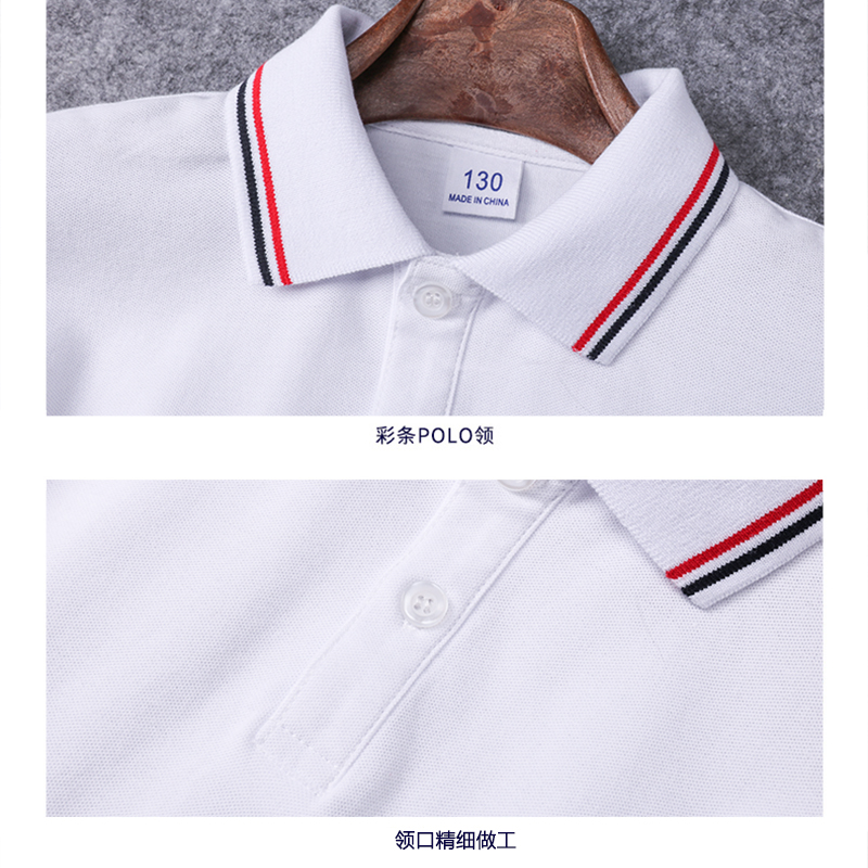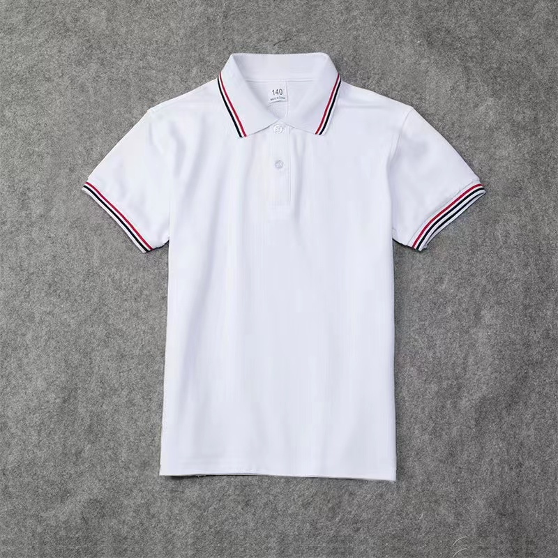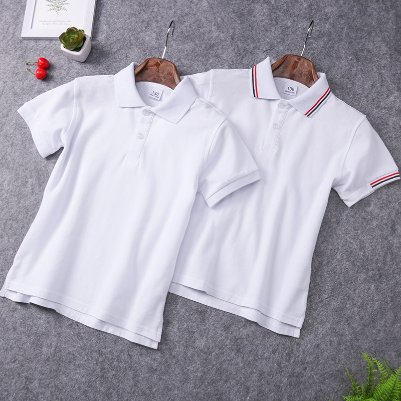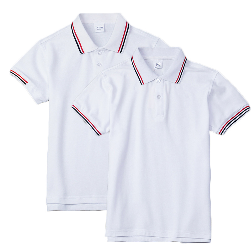 校服短袖 翻领男女童红黑条领白T恤小学生夏季 夏款 儿童白色POLO衫