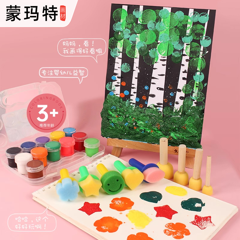 儿童海绵印章拓印棒工具幼儿园涂鸦颜料画刷美术绘画套装
