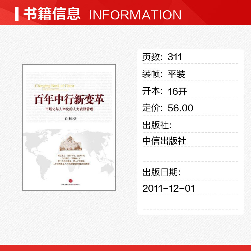 励志 社 人力资源管理 中信出版 图书籍 新华书店正版 人力资源经管 著作 肖钢 市场化与人本化 百年中行新变革