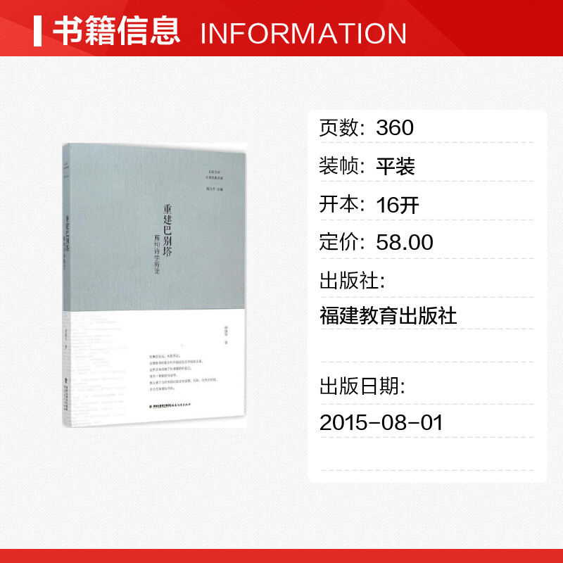 文学理论 文学评论与研究文学 新华书店正版 重建巴别塔 福建教育出版 著 图书籍 社 胡继华