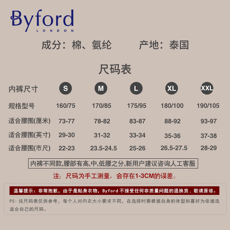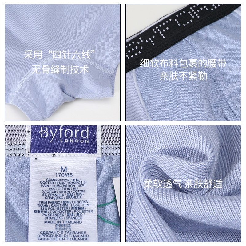 百富男士 内裤 棉质平脚内裤 男 Byford 四角裤 MW38014 特卖日