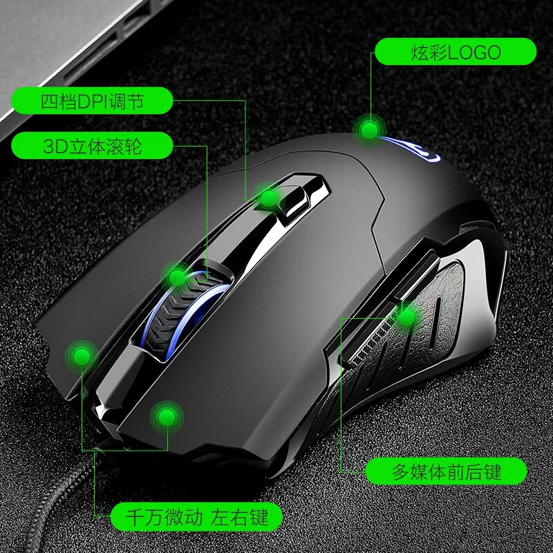ETT11电脑鼠标有线机械游戏办公家用usb笔记本台式 电竞无声静音
