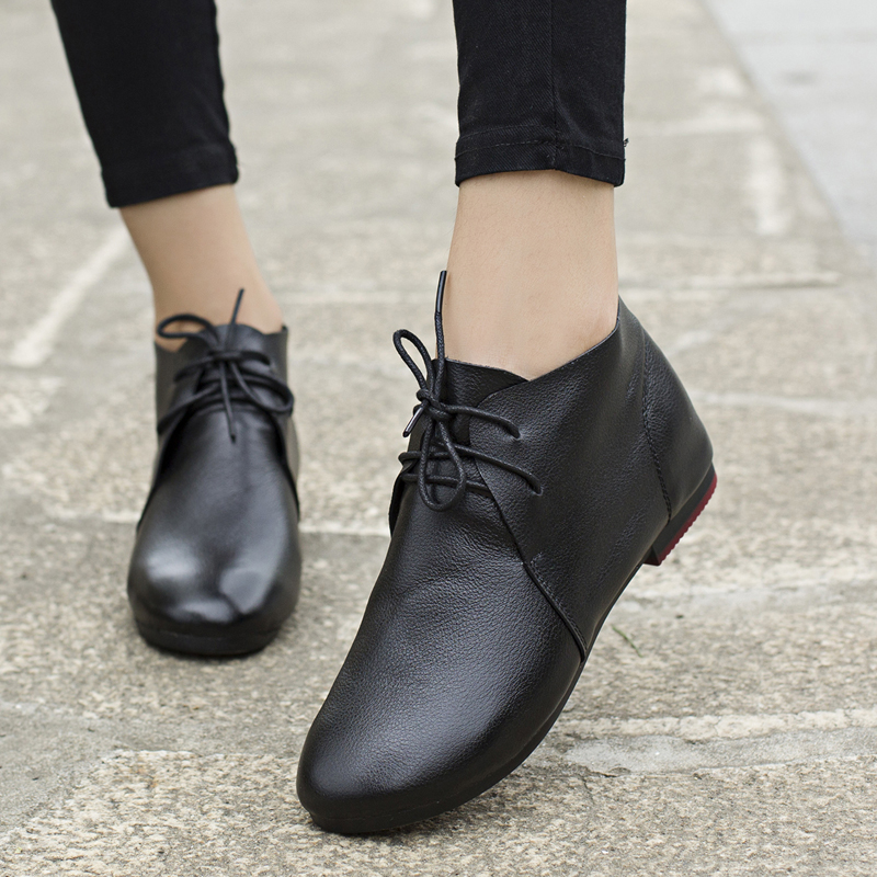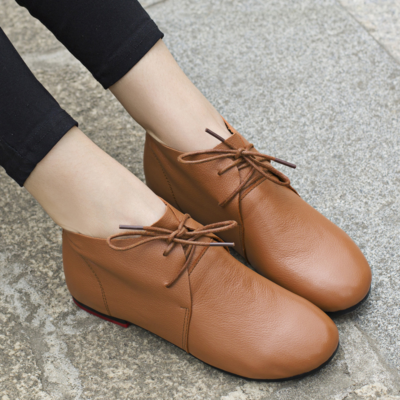 春秋平底鞋 女鞋 软皮复古单鞋 孕妇软底百搭小皮鞋 子 休闲鞋 2025新款