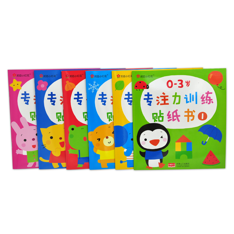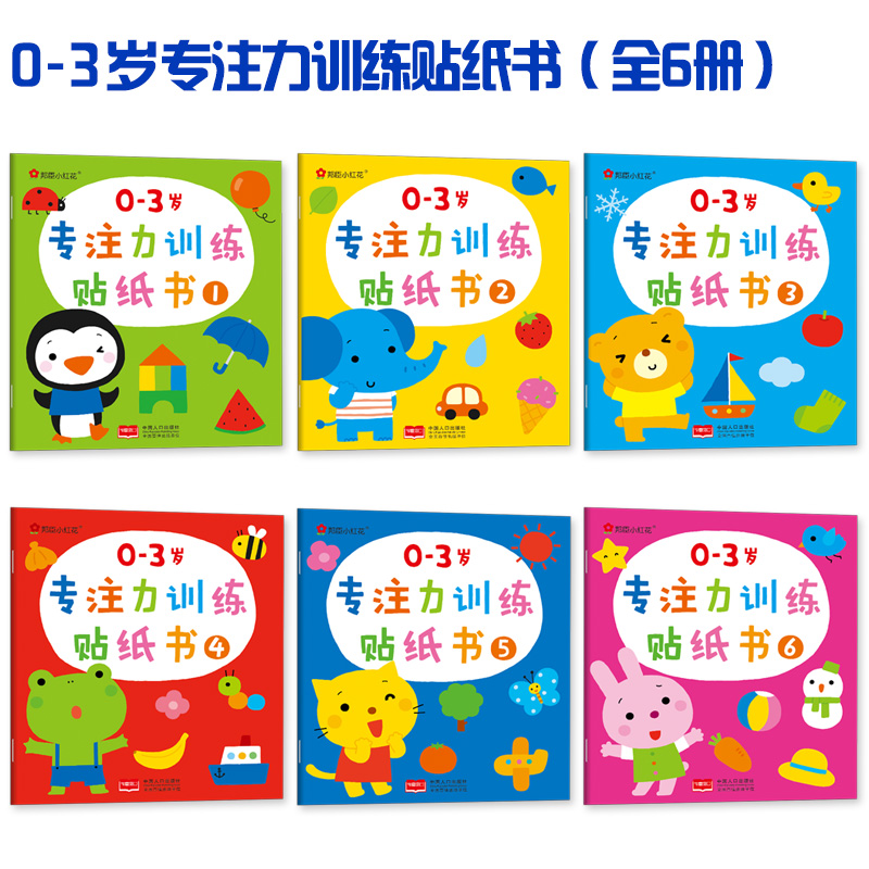 全6册小红花0 6岁宝宝启蒙贴贴画宝宝趣味好习惯贴纸幼儿智力玩具书籍 3岁专注力训练贴纸书宝宝动脑动手益智贴贴书籍0