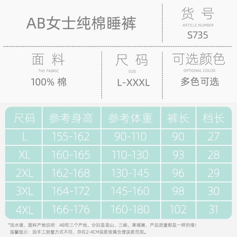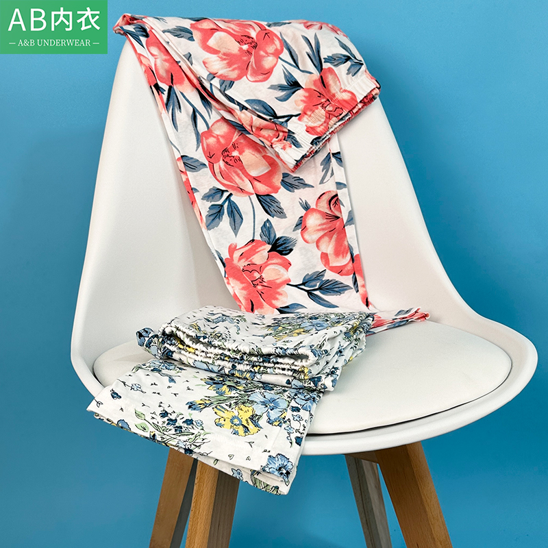 全棉宽松防蚊外穿家居碎花长裤 ab内衣纯棉睡裤 大码 薄款 子 女士夏季
