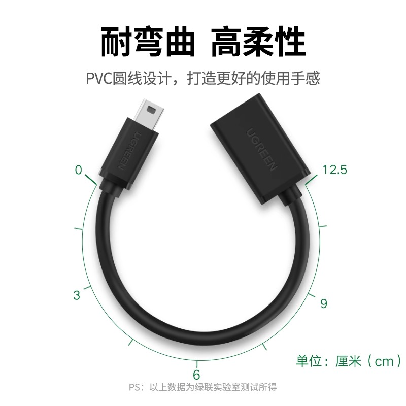 绿联miniusb转接头车载U盘转换接头otg数据线汽车音响听歌mp3 4优盘读卡器转换器导航通用t型接口usb连接线