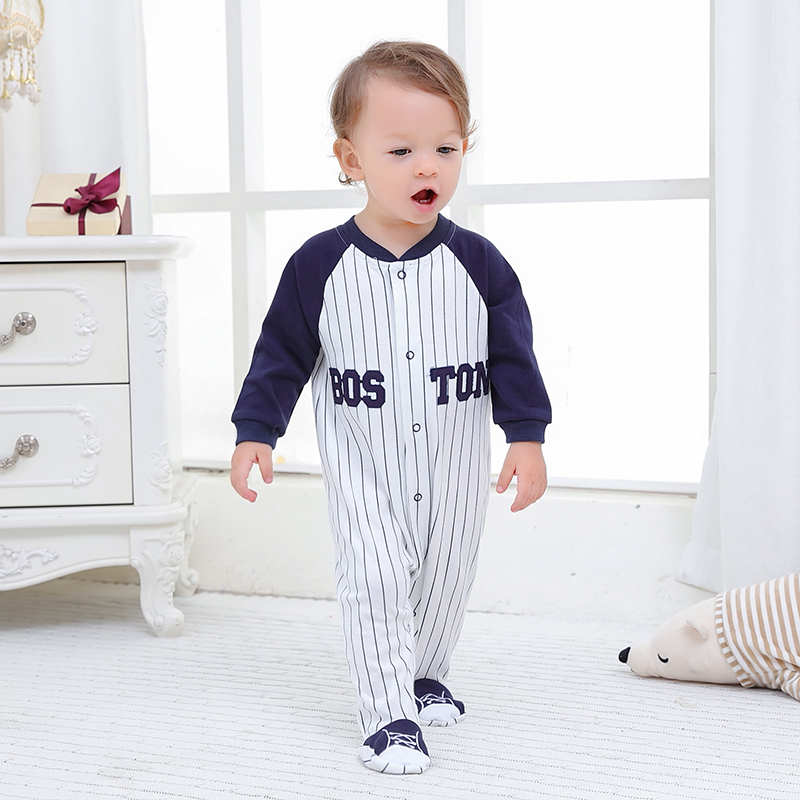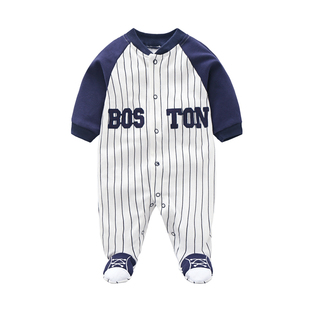 哈衣新生儿衣外出包脚秋装 1岁男宝宝长袖 婴儿棒球服纯棉春夏装