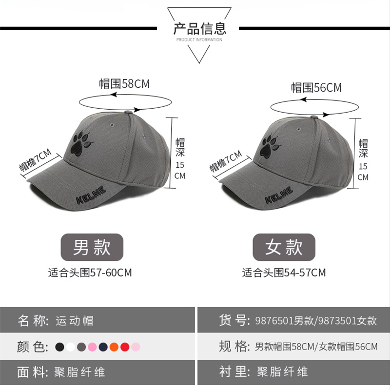 卡尔美运动帽鸭舌帽女户外遮阳帽网球儿童休闲棒球帽男 清仓