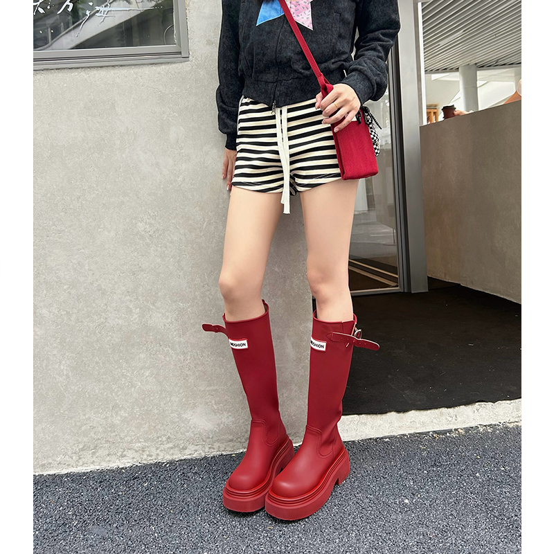 厚底防滑高筒红色雨靴子2025户外露营雨鞋 不过膝旅游长筒靴骑士靴
