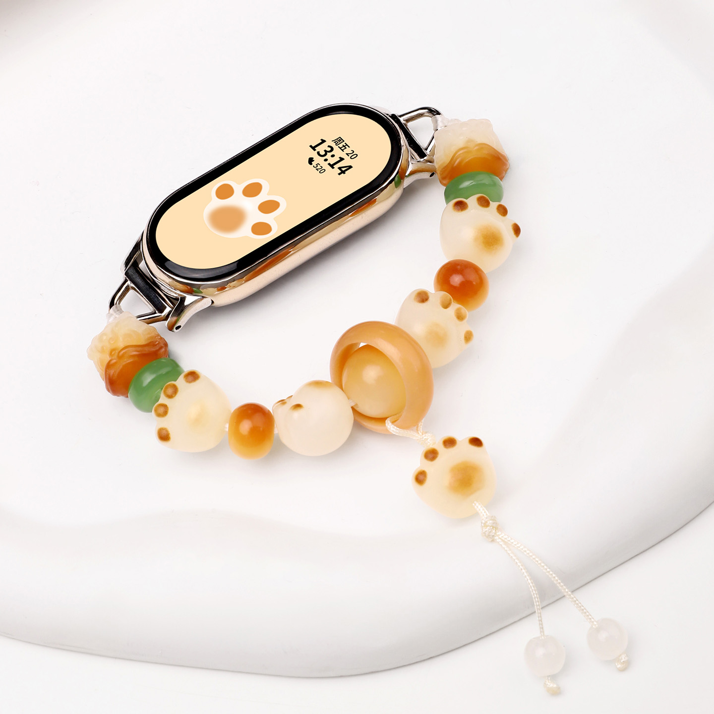 适用于小米手环10表带仿菩提猫爪9腕带小米8新款 串珠编织弹力绳女生国风夏天替换表链带ins复古配件智能运动