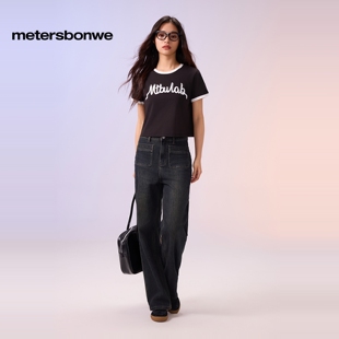 女士潮酷户外时尚 装 百搭工装 裤 舒适插袋牛仔长裤 美特斯邦威牛仔裤