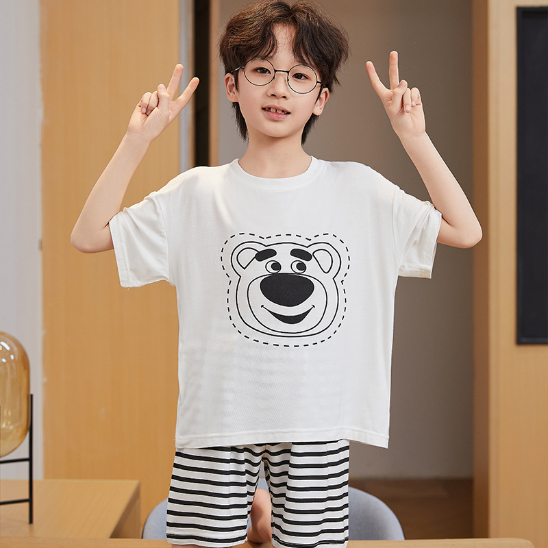 全棉初中学生家居服套装 纯棉卡通青少年秋天薄款 长袖 睡衣男春秋季