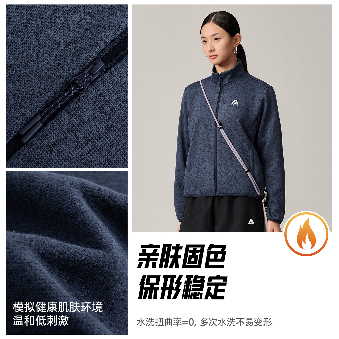 安踏火壳抓绒衣内胆大地之壳3女款 立领户外运动上衣外套 秋冬新款