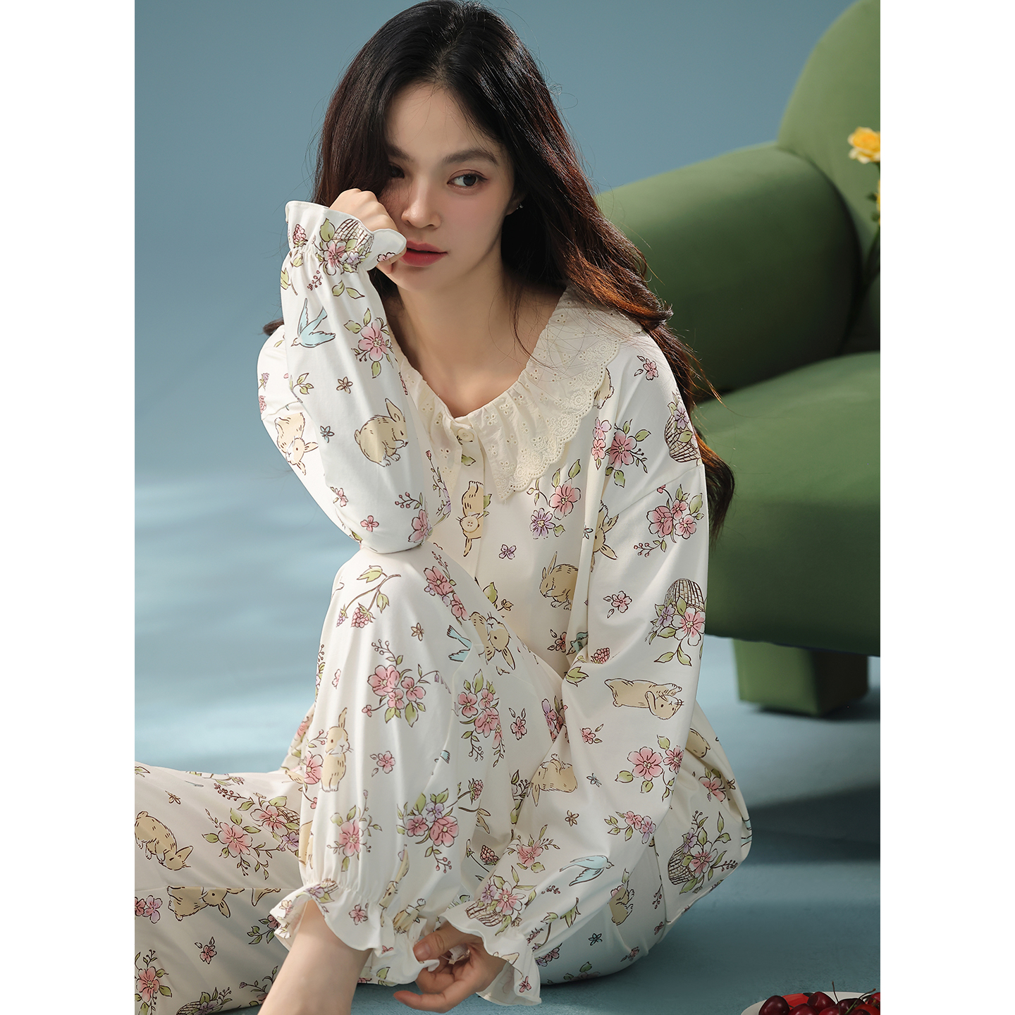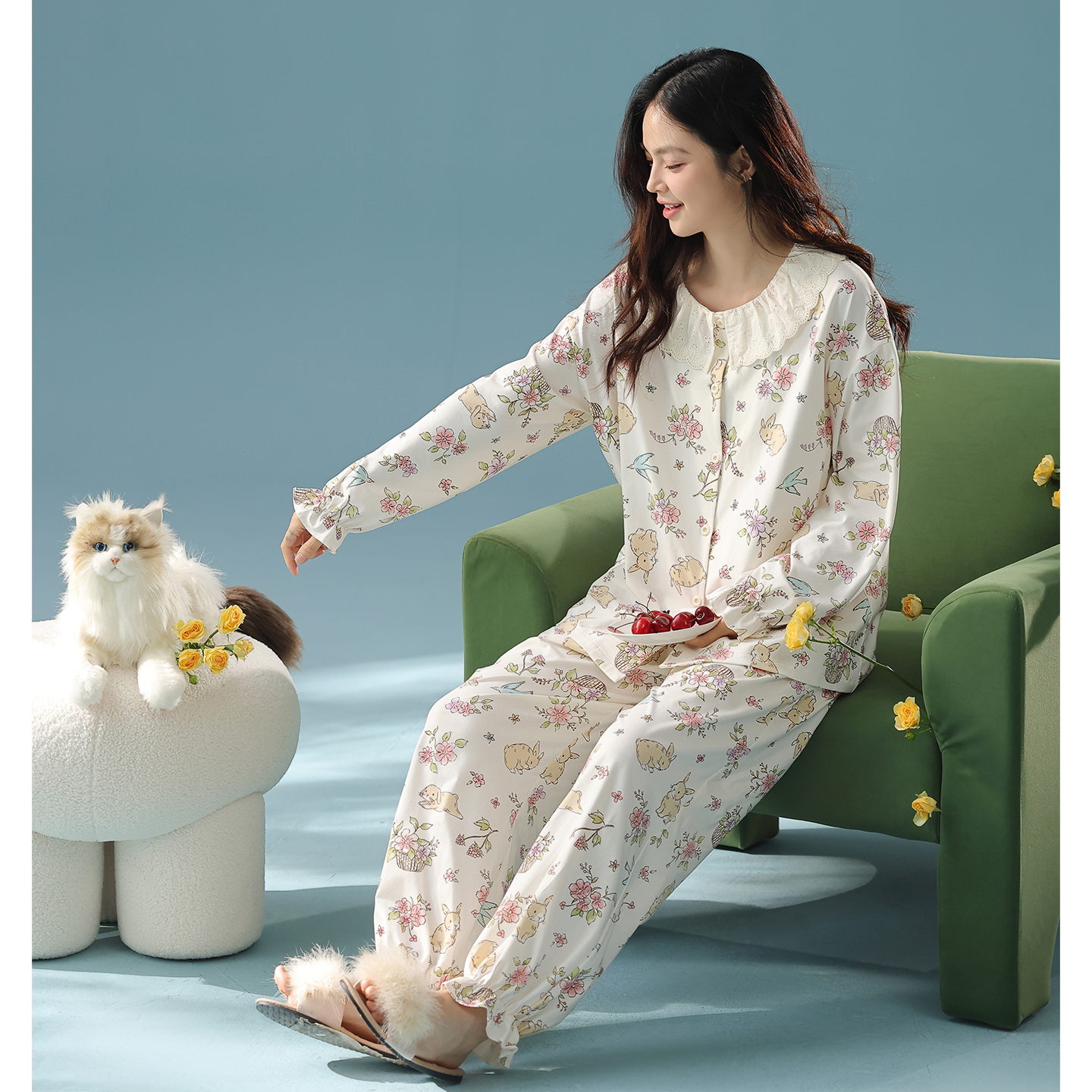 纯棉长袖 家居服套装 春秋款 夏2025年新款 冬 全棉秋冬开衫 睡衣女秋季