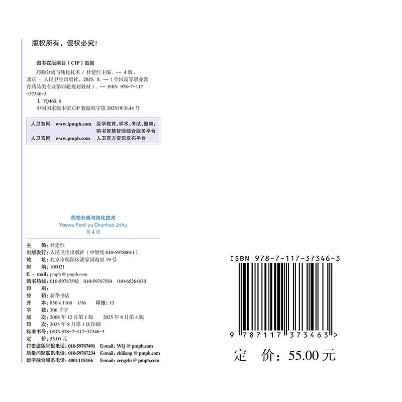 高职高专教材西药学专业 第4版 杜建红 平装 社9787117373463 赠数字资源 人民卫生出版 药物分离与纯化技术