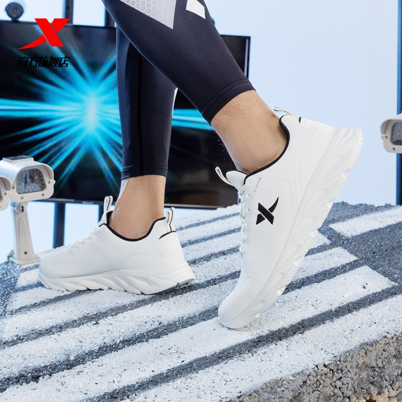 男初中学生专用跑步鞋 白色青少年运动鞋 软底减震革面 秋季 特步男鞋