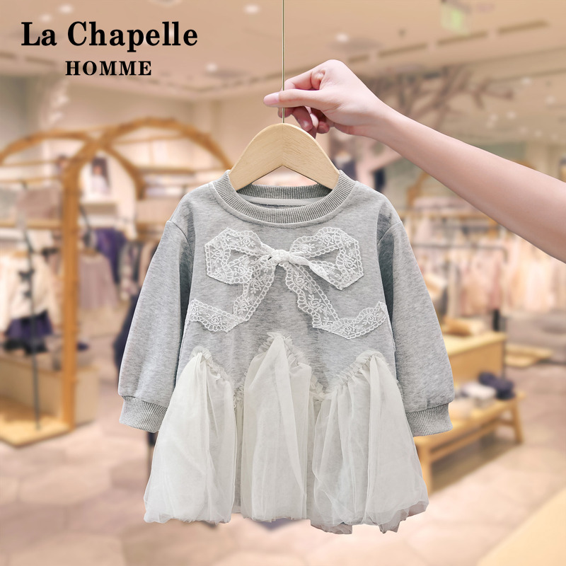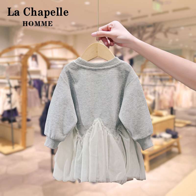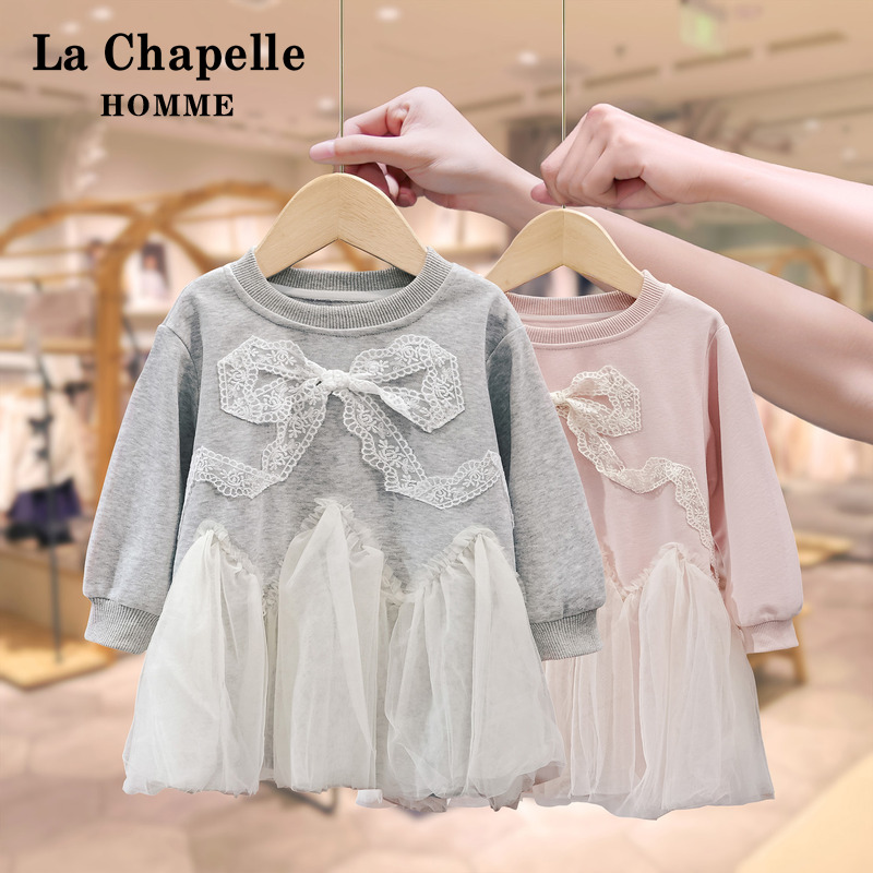 拉夏贝尔女童连衣裙春秋2025新款 卫衣裙子 儿童宝宝网纱公主裙秋季