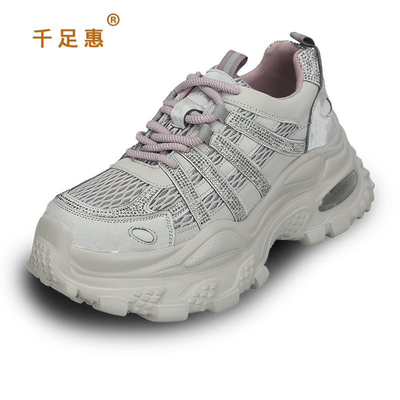 系带厚底百搭休闲老爹鞋 大码 新款 41到43厚底2025年秋季 千足惠 女鞋